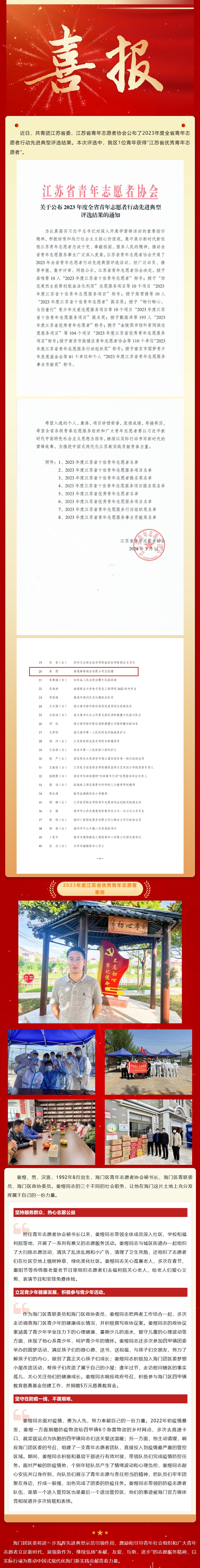 2024年3月,總經理姜煜榮獲“2023年度江蘇省優秀青年志愿者”。